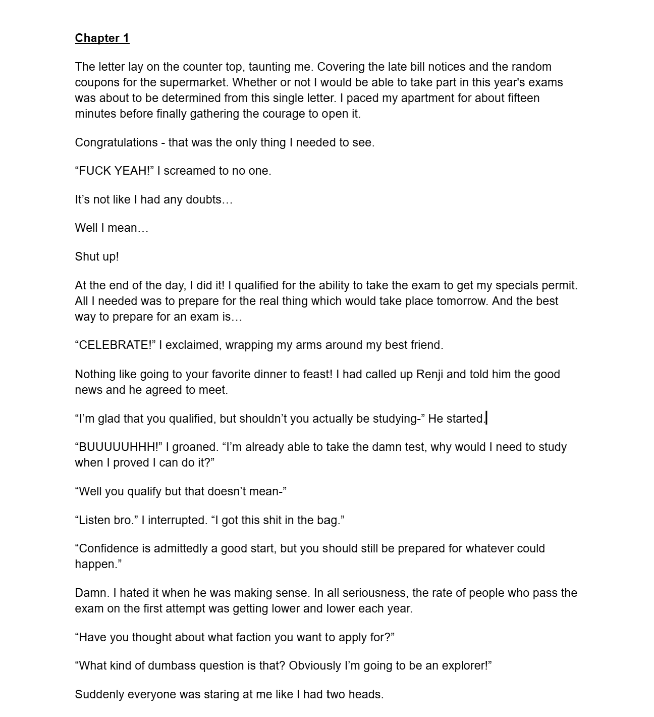 Here's a draft of my first attempt at writing hope yall like it!